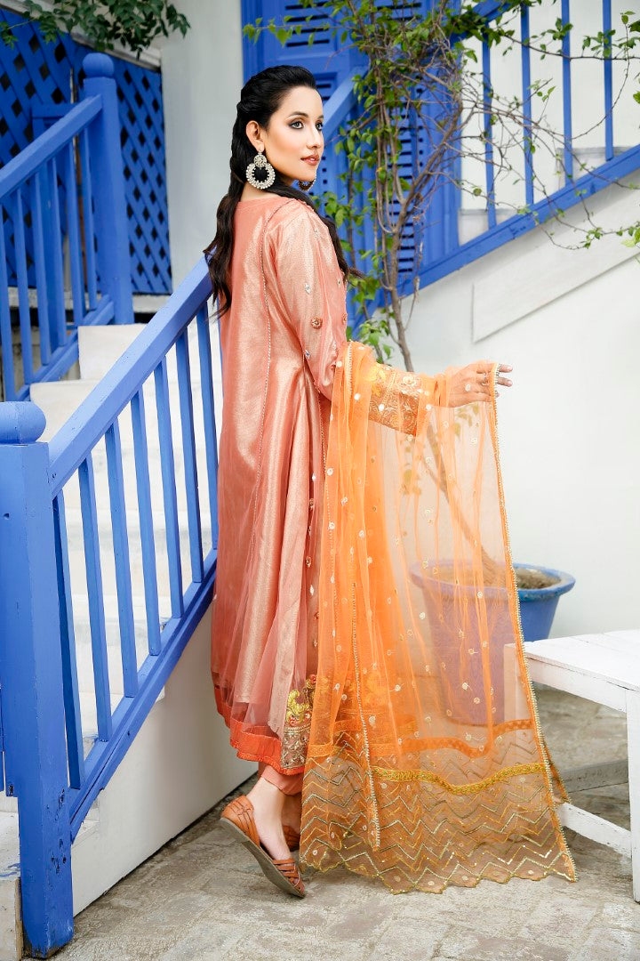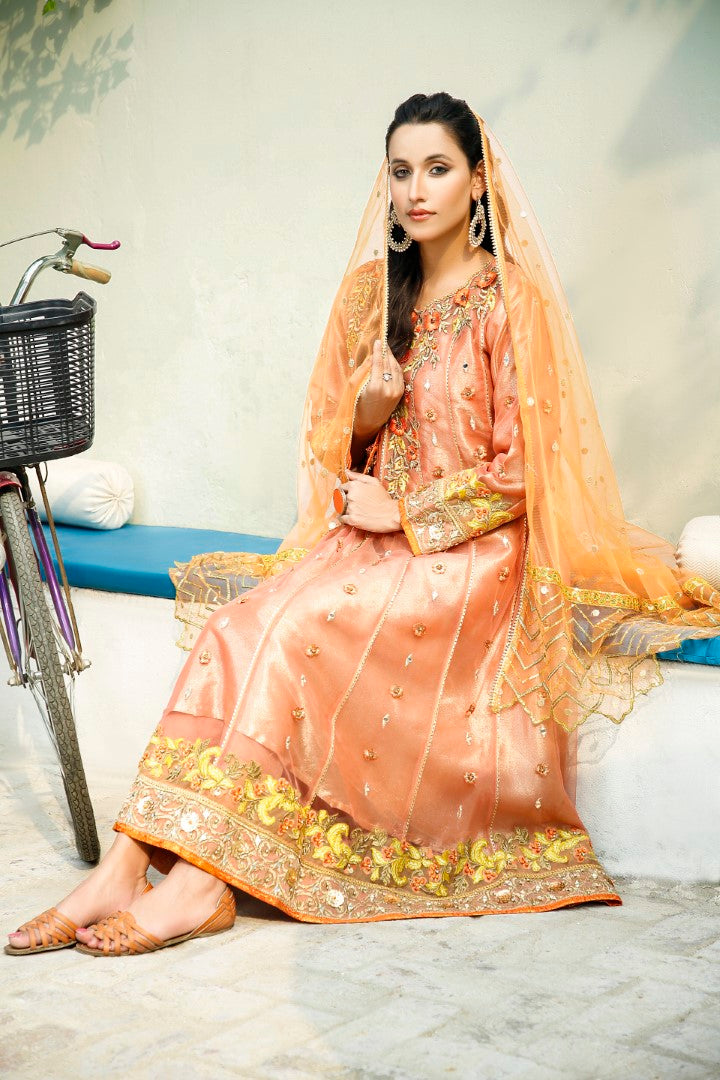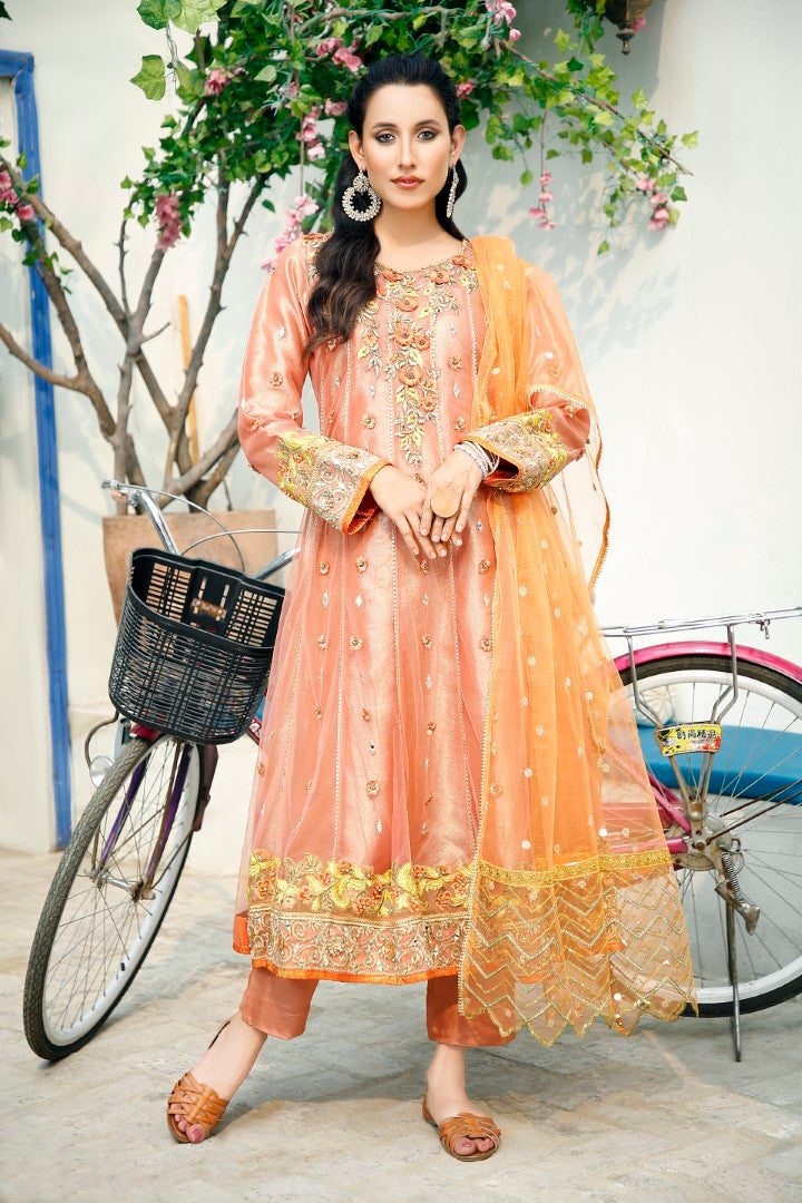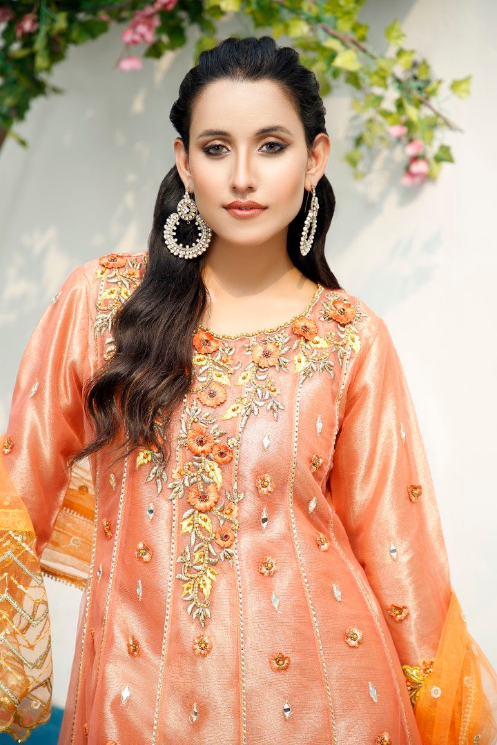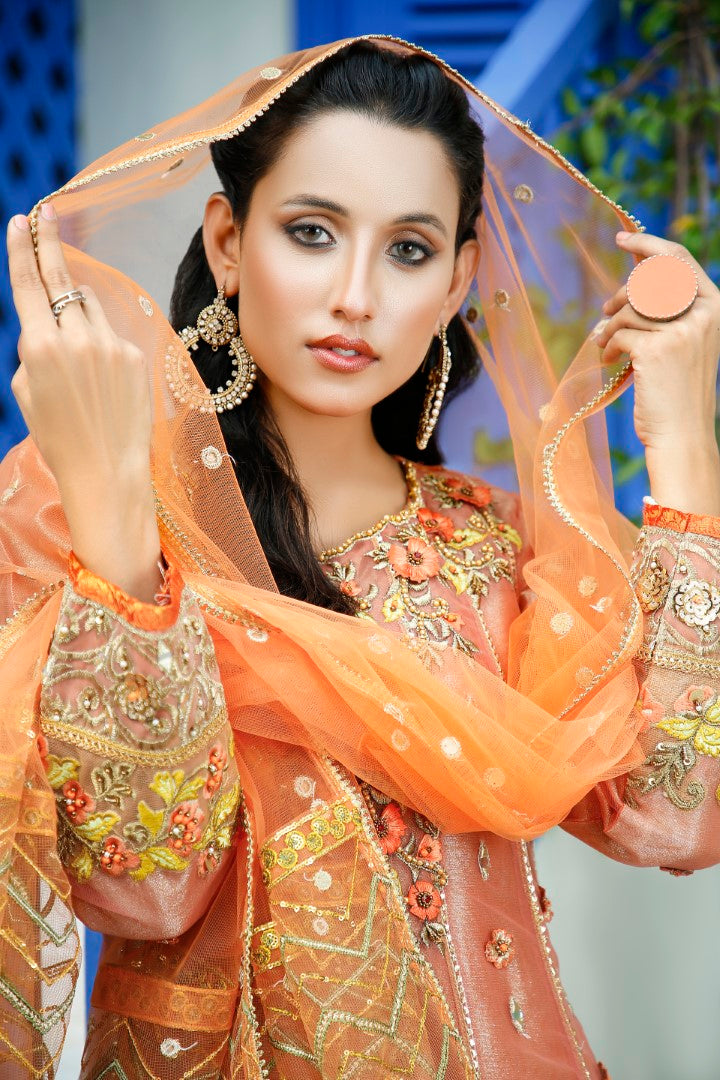 This stylish eastern dress is crafted with a premium fabric Shabnam Masoori and detailed with hand embroidery and stone work for a luxurious result. It is perfect for a variety of special occasions, giving you a unique and timeless style.